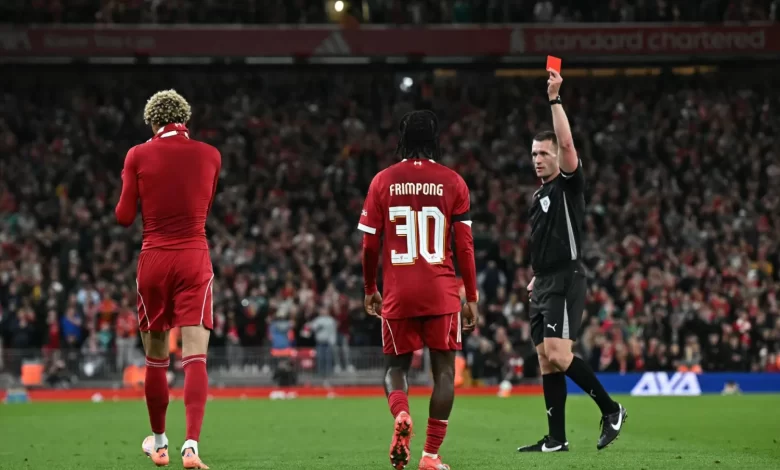 The Frenchman, who replaced record signing Alexander Isak at halftime, had been booked already for kicking the ball away in frustration and the second yellow five minutes from time left Liverpool defending a 2-1 third-round lead with 10 men.